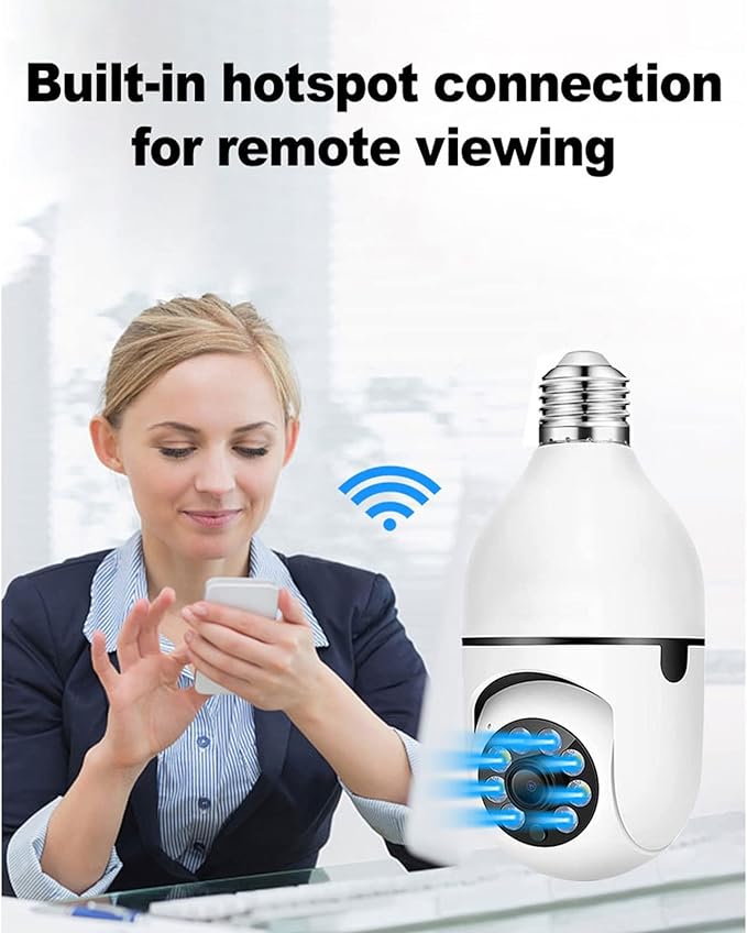 - Facile à installer】 : cette caméra WiFi adopte une base d’ampoule E27, facile à installer, pas de câblage supplémentaire, il suffit de la visser dans la base. Téléchargez l’application depuis l’App Store, puis connectez-vous au WiFi. WiFi 2,4 GHz uniquement pris en charge, ne fonctionne pas. avec Wi-Fi 5 GHz.