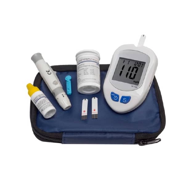 - Glucomètre SPENGLER livré avec : 1 lecteur de glycémie Tyson BioTB100, 10 bandelettes sans code, 1 solution de contrôle, un stylo auto-piqueur, 10 lancettes, 1 pochette un mode d’emploi, 1 guide d’utilisation rapide et 1 carnet de note